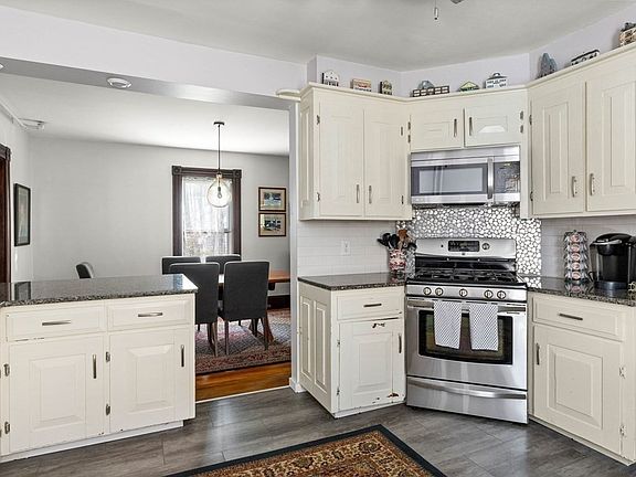 COMMUTER’S DREAM in the heart of Gloucester. This home has old world charm including original moldings, hardwood floors, high ceilings, and French doors that separate the dining room/living room with gas fireplace insert. The kitchen has granite counter tops and ss appliances. A spacious dining room and light filled sun room with new windows and recently renovated bath complete the 1st floor. Three stories of living, 3 bedrooms, laundry, and full bath on the 2nd floor. Storage space and 2 additional bedrooms on the 3rd floor. (1 being used as a dressing room). The full basement has newer plumbing, gas furnace, hot water tank (within roughly the last 5-6 years) and interior/exterior access. Lovely yard, garden & 4 car paved drive. Fully insulated and upgraded electric in 2020, new 8x12 storage shed in 2021, 6 new windows, new fence with swing gate in 2021 and fire pit, new washing machine and refrigerator. Close to T- Station, Parade route, downtown & much more!