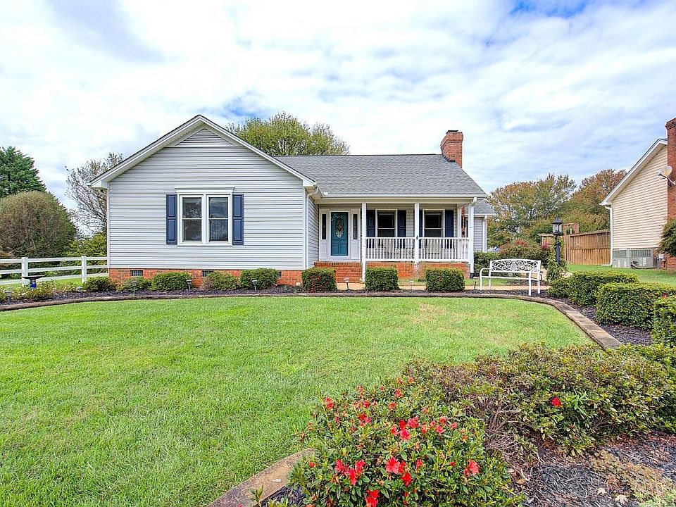 If you are searching for the perfect one level home this is it! This three bedroom two bath home is well maintained and move in ready. All you have to do is unpack! The living room is bright and comes with white brick fireplace, gas logs & cathedral ceiling, The kitchen boasts plenty of cabinets and counter-top space for prep work & tile backslash. All kitchen appliances remain. Large walk in laundry with sink and cabinets. Primary bedroom is large and comes with walk in shower along with double vanities & walk-in closet. Second bath has tub/shower both bathrooms have newer toilets. Real hardwoods in living area and LVP in bedrooms. Detached two car garage connects to house with deck that is approximately 19 x 12 and includes a pergola. Windows in garage replaced last year. This home is immaculate! 14 x 10 outbuilding included. Conveniently located in Greer with quick access to downtown Greenville, Greer , Spartanburg, Interstate, Shopping, hospital & airport.