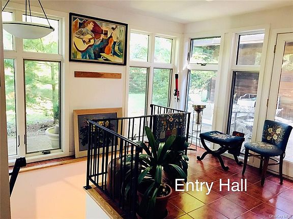 A warm and inviting modern architecturally styled home that is ideal for a home office or professional practice in the lower level with a separate entrance. The open floor plan creates a flow that's superb for entertaining or intimate family gatherings. Lovers of mid-century modern architecture will enjoy the fabulous original features of beamed ceilings, hardwood floors, built-ins and large windows. An impressive new addition boasts a family room/ library, a generous master suite and 4 person jacuzzi is perfect for one floor living. Gracefully set amongst an acre of private land, the spectacular property adds to the contemporary character bringing the outside and inside together as only a modern home can. Parking for 5 cars. 2 cars under the carport and room for 3 more in driveway and paved parking spaces.