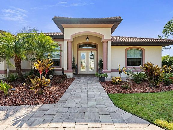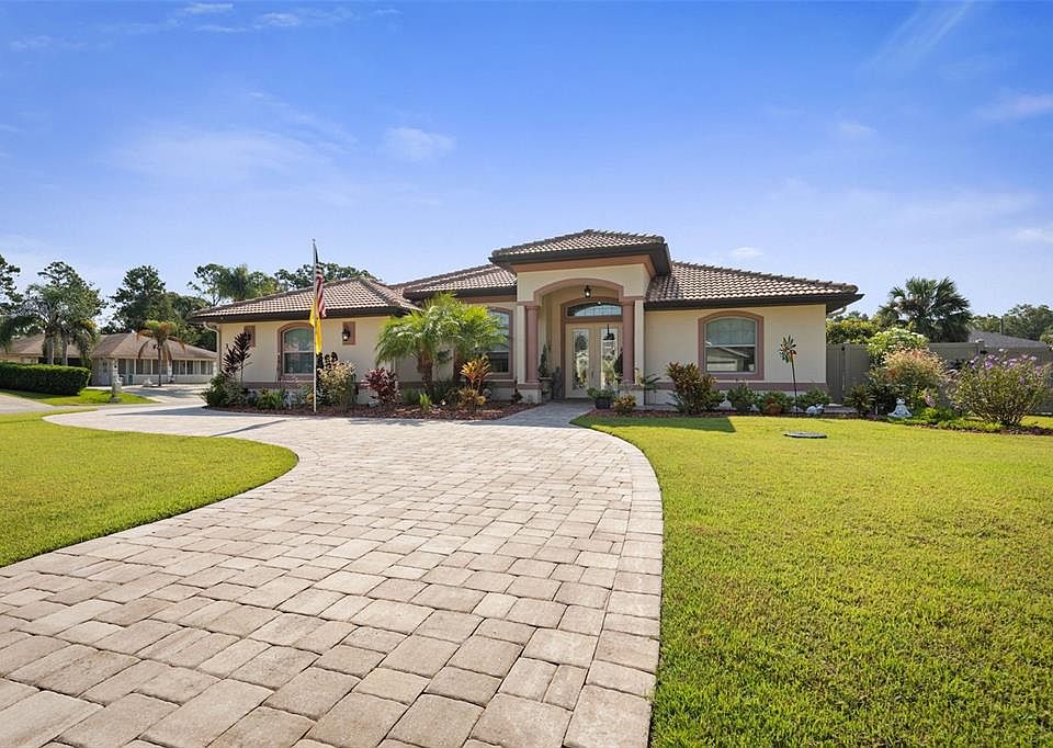 This stunning home offers luxurious living in the highly sought-after "F area of Palm Coast. Meticulously maintained home spans over 2,500sqft of thoughtfully designed living space with high-end finishes and many upgrades. Skip the wait of construction when this amazing home is ready and fully equipped with upgrades to elevate your comfort and lifestyle. Nestled on a corner lot, the home's beautiful curb appeal, manicured landscaping, paver driveway and walkways and elegant entryway with double doors invite you to step inside to discover timeless elegance and functionality in this well appointed 3 Bedroom 3 bath 2 car garage home. Inside the grand foyer discover a beautiful spacious open concept layout with refined architectural details, soaring 12ft double tray ceilings, crown moldings and ceramic tile throughout main living area. The heart of the home is a showstopper chef's inspired gourmet kitchen with upgraded wood cabinets, stainless steel appliances, a gas range, a wall oven-microwave combo, a corner pantry, an amazingly inviting granite kitchen island ideal for both casual dining and entertaining. It flows seamlessly into the formal dining area or kitchen nook with direct access through French doors to the covered and screened porch complete with a full summer kitchen that creates an effortless connection between indoor and outdoor living. Conveniently located off the kitchen nook is a dedicated study/office space. Tucked away, unwind in the luxurious primary suite, a private sanctuary boasting engineered wood floors, dual walk-in -closets, and an ensuite spa-like bathroom adorned with exquisite tile, dual vanities, a soaking whirpool tub, a large walk-in tiled shower and a private water closet. The split floor plan provides a peaceful retreat for family and friends. The two additional bedrooms are generously sized with engineered wood floors, double tray ceiling , one of which also has an ensuite bathroom complete with tiled walk-in shower. An incredible in house spacious laundry room with plenty of cabinets and counter space. The 2 car garage tiled floors adds a sleek, durable finish, remote control screened doors and a side service door onto paved walkways that lead around entire home, all enhance functionality. Additional amenities: never loose power with the WHOLE HOUSE GENERAC generator; owned propane tank feeds generator, both gas stove's and barbecue grill; central vacuum, fully fenced yard; sprinkle system on well, rain gutters and much more . Schedule a private tour and see why this exceptional home is the perfect blend of luxury, functionality and ultimate comfort!