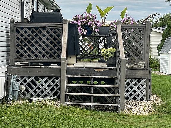 Double wide 3 bedroom home. Comes complete with fireplace, washer, dryer, refrigerator, dishwasher, above-the-range microwave, new water softener. New roof in 2022. Master bath has dual sinks, a garden tub and a walk-in closet. Has a 1 car garage with a long driveway (fits 4 cars), adjacent to a ‘guest’ parking spot. Large rear deck with a wrought iron patio set.