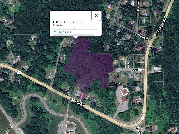 Subdivision plan (not approval) is available and 3-4 lots believed to be attainable or keep it as one large lot. RU-20 zoning, as described in town zoning code, can be used for single family, multi family, or senior housing. Other uses are also available through special permit. Close to downtown Mystic, Noank, Groton Long Point, Fitch Schools, Rt 95. Access via path at the end off Affeldt Dr.