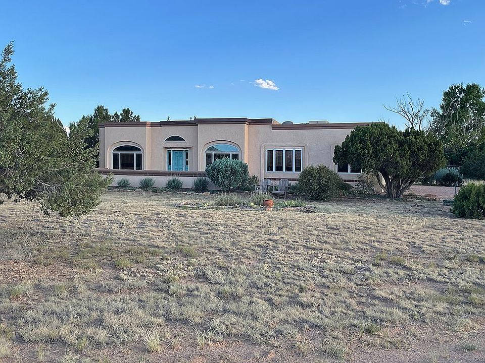 A beautifully presented home. Split bedroom floorplan. Separate den or office, tiled floors in living room, kitchen, dining room and baths. Wood floors in bedrooms and den. Central evaporative cooling. There is a very functional kitchen with a skylight, granite counters and a breakfast bar. All major appliances are to remain. The gas fireplace is also designed to heat the main rooms. In addition there is a private well. There are lovely gardens and a fenced rear yard with covered patio and a front entry courtyard. Nice sangre views as well. Two car garage with direct entry. There is nothing not to like about this delightful property.