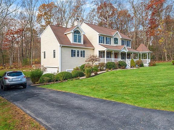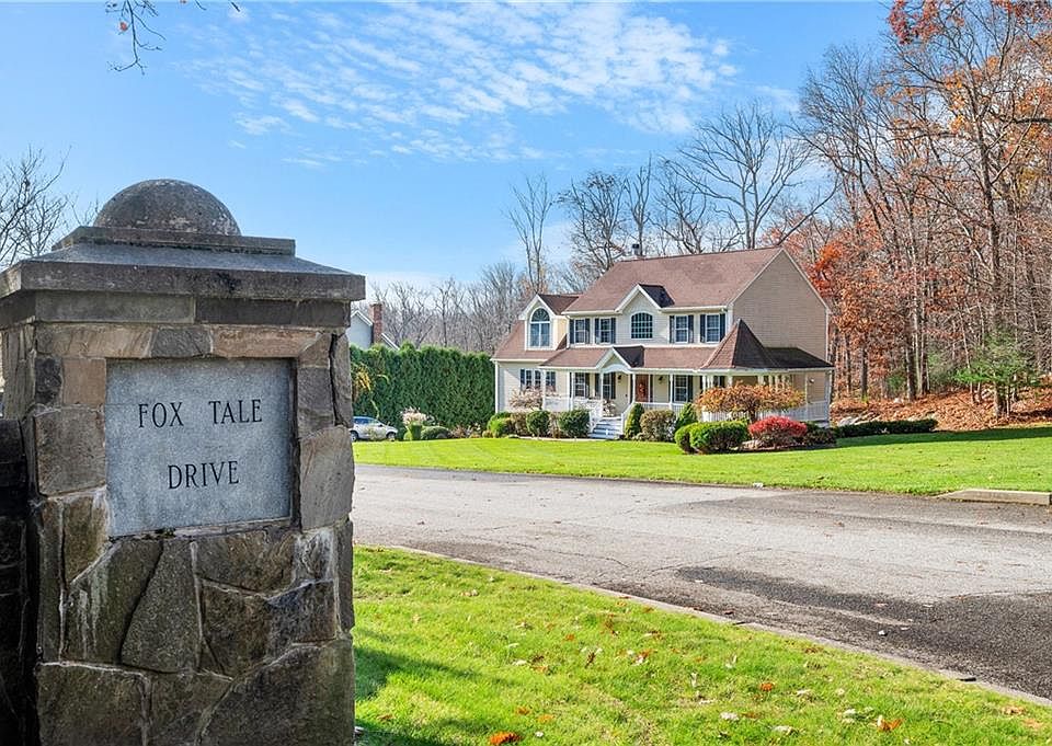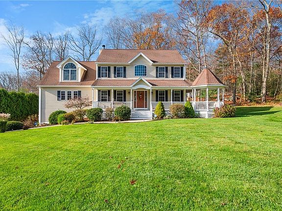STUNNING Colonial located on almost an acre in a great Granite Ridge cul-de-sac neighborhood. Corner lot offers plenty of wooded privacy. Fantastic curb appeal - AMAZING wrap around front porch with attached gazebo. Elegant open concept for entertaining. The kitchen features white cabinets, granite countertops and a large, open dining/sitting area with a double sided fireplace. French doors lead into a wonderful front to back great room with cherry hardwoods and access out to a large, partially covered rear deck. Stunning primary en-suite with cherry hardwoods, multiple closets, a gas fireplace, jetted tub, and a separate shower and double vanity; Three additional bedrooms are large enough for queen beds and have access to the second full bath; Lower level has a full walkout and full windows-- and could easily be finished for additional sq ftg. This special home features plenty of natural light in an ideal location! See you soon.