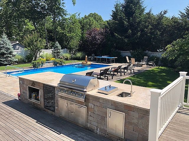 Move in and enjoy this charming Tiana Shores 4 bedroom, 3 bath ranch set on a quiet tree lined street. East Quogue / West Hampton Schools. Main floor includes open and updated EIK w/island, LR with vaulted ceilings and gas fireplace, 3 BR, 2 BA, hardwood floors and custom moldings throughout. Dining area with sliders open up to an expansive mahogany deck. Relax in the 3 season porch that leads to a covered porch overlooking the heated in ground saltwater pool with waterfall. The fully fenced in backyard features professional landscaping, outdoor kitchen, outdoor shower, fire pit and shed. Additionally, there is a full finished basement with an additional bedroom, full bath, rec room and laundry. Recently updated heat/AC systems, as well as hot water system, newer roof and siding. More pictures to follow!