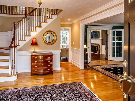 Deep in desirable Fay Acres, this four-bedroom colonial with its private backyard is a treasure worth seeing. Its lustrous hardwood flooring emanates a rich warmth that flows throughout the open floor plan. While crown molding and wainscoting add a touch of class to the more formal areas, a paneled fireplace and wall of windows offer a relaxed atmosphere to the family room, and the updated kitchen with its white cabinets and granite countertops invites visitors to sit and enjoy the views beyond the deck, including a stone firepit. Just off the kitchen, a large back hall with a sitting area leads to a separate stairway and a second-floor office that boasts a wall of built-ins. Three bedrooms and a master suite with a recently updated bath occupy the second floor of the main house. Bright with natural light, the walk-out basement is finished with a game room, gym, and bathroom. Truly a gem, this house is a must see.