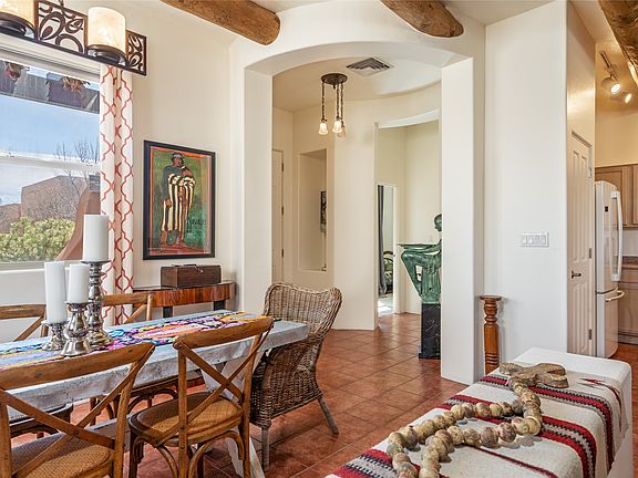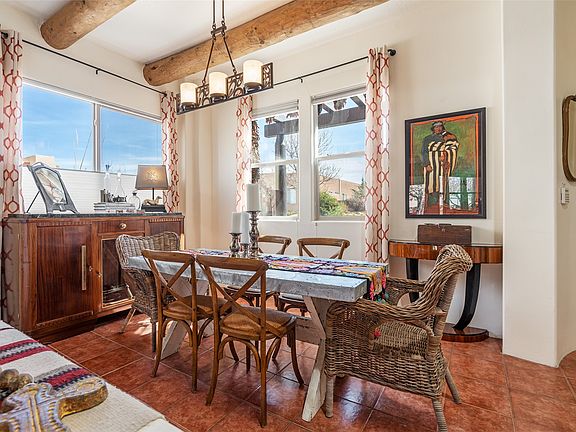 Welcome to 3 Gallina Peak, a beautifully designed home nestled in the sought-after Rancho Viejo community, just 13 miles from the historic Santa Fe Plaza. With a peak of Sangre de Cristo mountain views and a lovely private rear courtyard, this wonderful single-level residence offers both privacy and functionality. Inside, you'll find timeless Southwestern charm with tiled floors throughout, radiant heat, and mini-splits for efficient cooling. The open-concept design enhances modern living, while the wood-burning kiva fireplace and exposed vigas add warmth and character. A pony wall creates separation for the dining room while still allowing the open flow. The kitchen features a large central island and plenty of cabinet space and a pantry for storage. The primary suite is a private retreat, complete with a chic en-suite bath, a soaking tub, a separate shower, and a spacious walk-in closet. Outside, the enclosed backyard is thoughtfully landscaped with native vegetation, providing a serene outdoor space. Unique touches throughout make this home unique. Other upgrades include a high-efficiency tankless system for the radiant heat. Enjoy the Rancho Viejo lifestyle with 15+ miles of paved walking trails, several community parks, and reasonable covenants that help maintain the area's natural beauty.