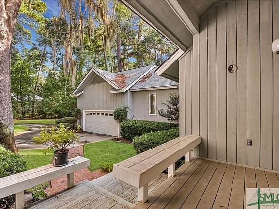 Welcome home to the alluring 3 Galphin Lane in highly desired The Landings neighborhood! Nature at its finest as it encapsulates this gorgeous property w/ majestic trees providing natural shade & tranquil backyard views (relax on the expansive wooden deck w/ built-in benches!) overlooking the golf course/water...so peaceful you can see wildlife roaming! Tucked away down the wraparound drive, take your shoes off at the front porch w/ built-in seating, step inside & be prepared to be in awe of the floor to ceiling windows that line the back of the home providing an abundance of natural light w/ the most breathtaking views! Inside flaunts an exceptional blueprint w/ all beds on main level, formal dining room, impressive living room w/ cathedral ceilings, wood burning fireplace & built-in bookcases, breakfast area to include a fixed desk space, massive laundry room w/ utility sink & copious amount of storage & counter space leading up to the massive bonus room w/ its own full bath!