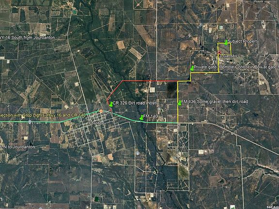 57.7 AC with 2/2 home and shop/garage. Property has wet weather creek. Blinds and feeders to remain. Home furnishings to remain. Washer and dryer in shop will remain. Great country views. Wild life galore. Deer, dove, turkey, etc. have been hunted. Feeders have not ran in over a year. Easement drive to house. McCoy water and Karnes Electric are utility suppliers. Septic recently inspected.
