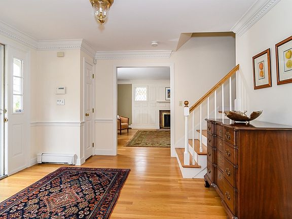 Welcome to this picture-perfect Colonial in the heart of desirable Wellesley Farms. This expansive home offers exceptional living space, starting with elegant formal rooms and a stunning fireplace framed by rich wood paneling. A charming library/music room provides a peaceful retreat. At the center of the home is an impressive eat-in chef’s kitchen with a large center island, custom cabinetry, and high-end stainless-steel appliances, flowing seamlessly into a spectacular fireplaced family room with soaring ceilings and walls of windows. An expansive mudroom supports an active lifestyle with effortless organization. The second floor features four bedrooms, including a primary suite with two walk-in closets and a beautifully appointed bathroom. The lower level offers a fantastic playroom with a full bath. Enjoy two patio spaces ideal for entertaining and a spacious yard for outdoor play. Conveniently located near the commuter rail, restaurants, and shops. Wow!