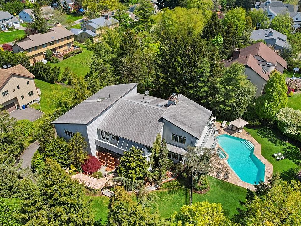 Rare and sophisticated contemporary style home tucked away in the highly desirable Marx Estate section of Scarsdale. First time on market since built and remodel in 2015, this worldly home spares no attention to detail. Step into the remarkable, double-storied foyer complete with artisanal, inlaid Italian marble flooring and striking art deco brushed steel and wood banister. The main level includes a formal living room with floor to ceiling windows, powder room, an elegant dining room with built-in glass hotplate and concealed warming oven, a dual-sided chef's kitchen with high-end appliances from Gaggenau, Thermador and Subzero, to name a few, and a breakfast area with access to the large wraparound deck and outdoor, built-in, stainless steel grill with countertop and refrigerator ideal for entertaining. From the kitchen there is a convenient en-suite bedroom and a laundry room with access to the two-car garage. Wrapping up the main level is perhaps the most impressive room in the house; a custom wood paneled den complete with fireplace and bar that overlooks the large, heated pool with hot tub in a private and lush landscaped setting. On the upper level, you will find five large bedrooms, two of which are en-suite, and a double sink hall bathroom. The stunning primary suite with marble fireplace and large balcony includes a dressing room, sitting room and a travertine and marble bathroom with soaking tub and dual glass enclosed showers with steam room functionality. A stately library/home office paneled in mahogany and walnut with adjustable shelves for over 2000 books completes the upstairs. The lower level includes a full home gym, two bonus rooms and bathroom. Savant home automation throughout offers seamless control of Lutron lighting, climate and audiovisual from the touch of an iPad or smart phone. A Generac 36kw generator and heated driveway leaves no stone unturned in this luxurious oasis retreat just 35 minutes away from Manhattan. Additional Information: Amenities:Dressing Area,Marble Bath,Soaking Tub,Stall Shower,Steam Shower,Storage,ParkingFeatures:2 Car Attached,