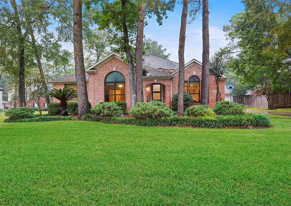 Highly sought-after Single Story Home on a corner lot, in a quiet neighborhood in the front of The Woodlands with a pool & outdoor living including a summer kitchen. Recently updated with new energy efficient windows, kitchen remodel to include Viking cooktop, all stainless appliance and new deep sink, custom front door, added custom built built-ins in dining room, summer kitchen w/Lion Premium Grill, outdoor electric fireplace for ambiance, TV and outdoor speakers. Other updates include custom roll up blinds, Elfa closet organizer in primary closet, re-plastered pool with Pebble Sheen, new oversized pool filter and even a professionally installed epoxy garage floor. This home is an open floorplan with large bedrooms and no carpet in any of the rooms. Home is move-in ready for its lucky new owners.