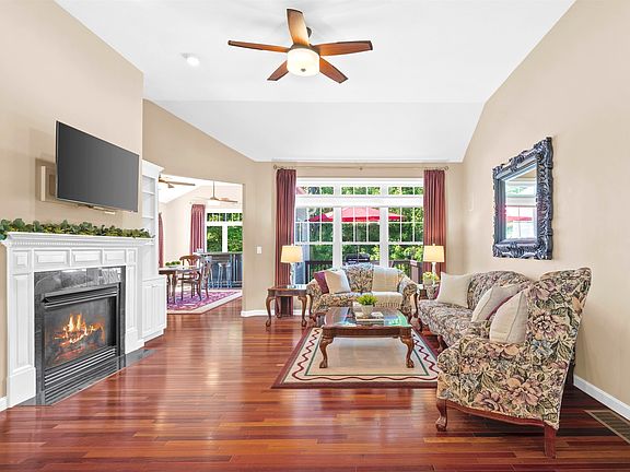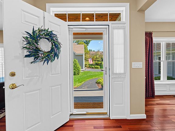 This stunning DETACHED unit at The Fells is so spacious you'll forget it's a condo! 2 levels of gorgeous living space w/ 9-12FT CEILINGS--it's larger than many houses! Set on a quiet circle abutting 114acres of COMMON LAND & TRAILS, you are a quick walk to the lovely IN-GROUND POOL and club house. Once in from the covered front porch, admire the magnificent open concept living room with TRANSOM WINDOWS and a lovely GAS FIREPLACE surrounded by custom built-ins. A formal dining room has front garden views from tall front windows while a spacious CORNER OFFICE offers plenty of privacy. Head back to the pretty granite kitchen with solid wood cabinets, BREAKFAST BAR and handy wine or COFFEE STATION. This rare design includes an oversized room off the back that works as a 2ND LIVING ROOM or dining room--perfect for entertaining (complete with moveable bar) and offers access to the tidy back deck with views of the woods. The FIRST-FLOOR PRIMARY SUITE has 2 vanities, a soaking tub, 3/4 shower plus a walk-in closet w/ CUSTOM STORAGE SYSTEM. Don't miss the 2nd bedroom and full bathroom at the opposite end of the house. A large GUEST SUITE in the walkout basement includes a bright bedroom/den, full bathroom, plush family room/library and a large flex space perfect for GYM or pool table! Solid CHERRY FLOORS up and new LVP floors down, you'll enjoy a STANDBY GENERATOR updated systems, FULLY FENCED YARD and doggie door. Quick access to Rt 101, Amherst Village and Baboosic--this is THE ONE!