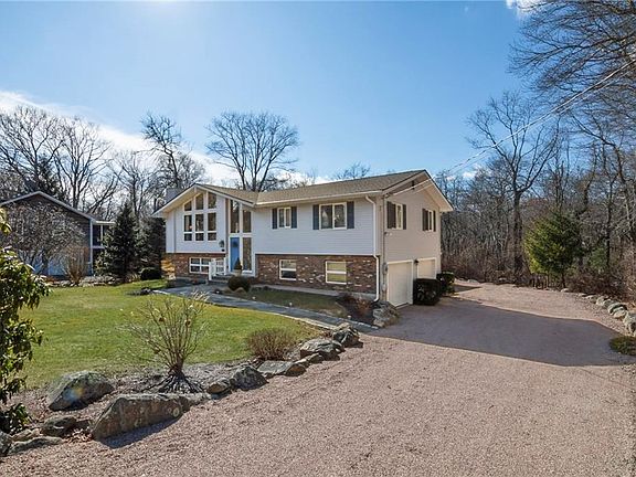 A natural setting encircles this spacious split-level ranch style home that has a contemporary flair; a soaring wall of windows in the living room lets the sun pour in and frames views of the surrounding trees. A rambling split rail fence traces the front of the half-acre property which features decorative trees and shrubs along with a curving manicured walkway. The back porch and deck look into a dense forest grove that provides serene privacy and rustic beauty. A generous 3,300 square feet of living area encompasses three bedrooms, four bathrooms, and the flexible use spaces of a finished basement and an office. Central air keeps the interior cool in the summer heat while two gas fireplaces add a warm touch on chilly days. A four-car garage adds bonus room for bike, paddleboard and jet-ski storage. Located in the desirable Shelter Harbor Fire District, walk through quiet, tree-lined roads to private tennis courts and Grove Dock which offers moorings, kayak storage and a boat ramp. Sun bathe and swim on the sandy neighborhood beach or boat across Quonnie pond and relax on the secluded and gorgeous crescent of Weekapaug beach. Body surf in the great Atlantic or recline in a beach chair while taking in expansive views of Block Island, Watch Hill and the Charlestown breach way. Explore the nearby quaint roadside markets, coffee spots and tackle shops of South County, while "urban amenities" such as great dining, quality schools and highway access are just a few minutes away.