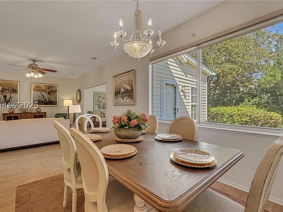 REDUCED PRICE! Nestled in the SUN CITY HILTON HEAD community, this Camden/Shenandoah 2 BD/2BA w/ flex space sits on a peaceful cul de sac. Inside, a spacious living/dining area flows into a large Carolina Room, offering serene views of the landscaped backyard. The kitchen/dining area overlooks this scenic space as well. Enjoy the patio's private retreat feeling, perfect for savoring your morning coffee. The primary bedroom boasts an en suite bathroom.