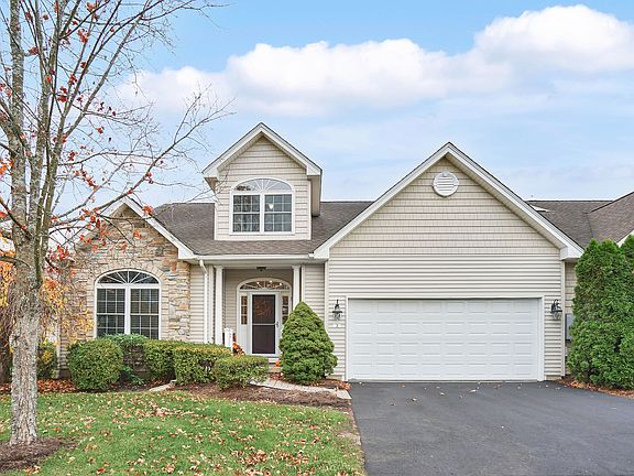 Welcome to this conveniently located 55+ adult community. This meticulous well-maintained home features 2,089' of living space. It offers three bedrooms and three full bathrooms, providing ample room for comfortable living. The main living area, features an open floor plan, seamlessly connecting the living room, dining room, and eat kitchen. The kitchen is equipped with modern appliances along with ample counter space, making meal preparation a breeze. Sliding glass doors in the dining room provide access to a trex deck leading to the outdoor space, allowing for enjoyment of the surrounding environment. The primary first floor bedroom boasts a spacious layout with ample natural light and 2 large closets ! The attached bathroom includes a well-appointed walk in shower, offering a relaxing retreat. There's also another bedroom on the first floor perfect for guests. The third bedroom is located upstairs and, generously sized. Also, upstairs there's another room that can be an office,or craft room, providing flexibility for a variety of uses. Super nice feature is the attractive sitting area, perfect for relaxing! You'll find a walk in attic & furnace on the 2nd floor too both offering great storage space! This home's desirable location has easy access to local amenities, ensuring that residents can readily meet their daily needs. The property presents an opportunity for those seeking a comfortable and well-appointed living experience. Plus,an attached 2 car garage!
