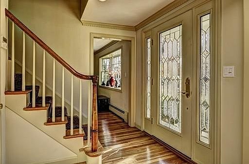 True curb appeal in "Prep neighborhood"- 5 bedroom colonial has it all. Where to begin-front to back living room w HW floor, gas insert fireplace, wall to wall awesome built in bookcase & beautiful crown molding. 8 Yr young kit w is sure to satisfy w granite countertops, high end ss appliances, classy full coverage wooden/glass door cabinets, & 4 stool center island in contrasting color. 6' Tall wall of windows in the sun drenched, front to back FR w skylights, cath ceiling, 2 set of sliders,1 leading to deck, sound system & magnificently landscaped yard. 1st Flr warm and inviting master bdrm suite has private bth w Waslet Toto hopper, closet, walk in closet, cath ceilings w skylight and loads of light from many windows. 1st Flr laundry closet in the master suite & second hookup in the lower level. 4 Upstairs corner bedrooms are good size w closet organizers. Bth up is bright & white w cath ceiling, skylight & closet. LL playroom is big! Central air, security sys,fabulous location.