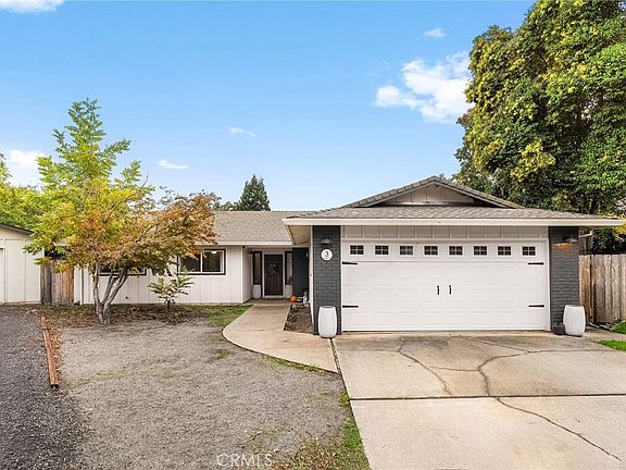 Nestled on a cul-de-sac just blocks from Lower Bidwell Park, this beautifully updated 4-bedroom, 3-bath home with an office offers the perfect blend of comfort, functionality, and charm. Over the past few years, nearly every surface has been refreshed — from new drywall, texture, and paint throughout to all-new lighting, fixtures, and appliances. Step inside to an inviting, well-designed floor plan with the bedrooms privately situated on one side and the main living spaces on the other. The spacious living room features warm laminate flooring, a classic brick fireplace, and abundant natural light with easy access to the backyard. The kitchen offers generous counter space, new appliances, and a large granite single-basin sink. The bathrooms have been stylishly updated with new tile and double sinks in both the hall and main bathroom, while three of the four bedrooms feature new plush carpet. Behind the scenes, the home has received major system upgrades including a new HVAC system, tankless water heater, added insulation, and solar panels with a new inverter for energy efficiency. The backyard is an outdoor retreat — complete with a large covered patio, mature fruit trees, a spacious lawn, and an in-ground pool with a slide for summer fun. A detached secondary garage with a roll-up door makes an ideal workshop, complemented by an additional storage shed. Located just minutes from Chico’s parks, trails, schools freeway access, and downtown, this move-in ready home truly checks all the boxes!