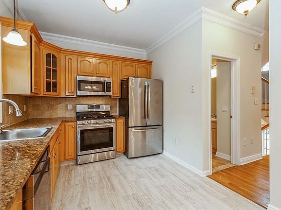 This charming 1-family townhome offers a delightful blend of comfort and functionality. With 2 bedrooms plus a spacious den ideal as a 3rd bedroom or office this home provides versatile living space. The private, fenced-in yard is a perfect retreat, and there's even the potential for parking up to 2 cars. The kitchen is a cook's dream, featuring stainless steel appliances, granite countertops, and a stylish tile backsplash. Throughout the home, you'll find beautiful hardwood floors, elegant crown molding, and soaring 9-ft ceilings, with vaulted ceilings, adding an extra touch of grandeur on the top level. A full-sized washer/dryer adds convenience, making laundry day a breeze. Located just minutes from the Weehawken Light Rail and Ferry stations, commuting to NYC is quick and easy. Additionally, you're close to Weehawken's public pool, Waterfront Park, and the scenic Hudson River Walkway perfect for outdoor activities. This home combines ideal living with unmatched convenience!