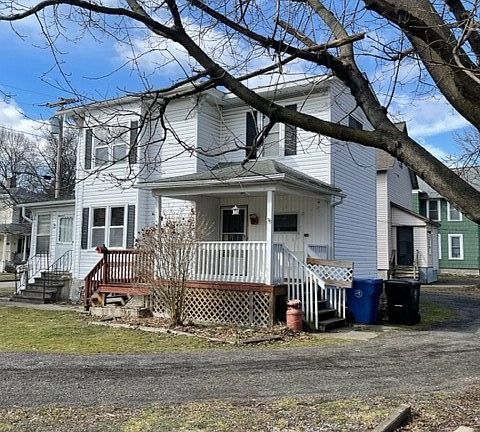 This Two Story 3 bedroom home is located on the West end of Cortland, close to downtown, SUNY Cortland and Suggett Park. The home sits on a spacious rare double corner lot in the city. There are two covered porches on the house, one is enclosed. This classic home has been updated with replacement windows and vinyl siding. The main level hosts a kitchen, living room, formal dining room, laundry room and full bathroom. The second story hosts three bedrooms and a full bath. The master bedroom has a walk-in closet. There is a one car detached garage. This house would make a nice home or could be used for student housing with some interior updates.