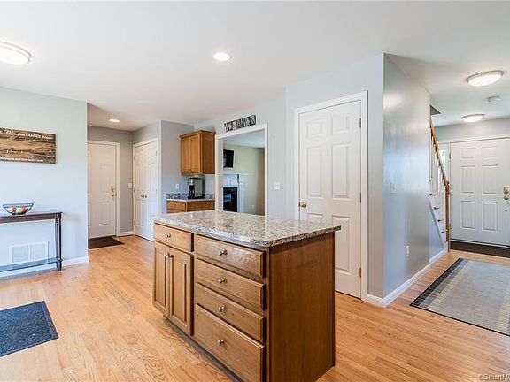 Welcome home! Spacious and bright 3BR/2.5 Bath colonial with Central Air in a desirable subdivision. Location feels like you are in the country, but easy access to I-395, as well as shopping, dining and entertainment. Lots of upgrades to this well maintained home. New granite kitchen counter tops were installed in the eat-in kitchen, and over 600 sq ft of space was recently finished in the basement, turning it into a beautiful, bright family room which includes a granite bar...just a perfect place to entertain. Brand new hot water heater. Convenient 2nd floor laundry and large master BR suite with two huge "His & Hers" walk-in closets. Generous closet space in the other two BR's as well. Back slider leads out to a composite deck and pea-stone area where you could add a fire pit. Woods border one side of this over-sized lot, so you have lots of privacy, and the house is situated on higher ground so sellers say the sunset views are absolutely gorgeous! Come take a look-you won't be disappointed.