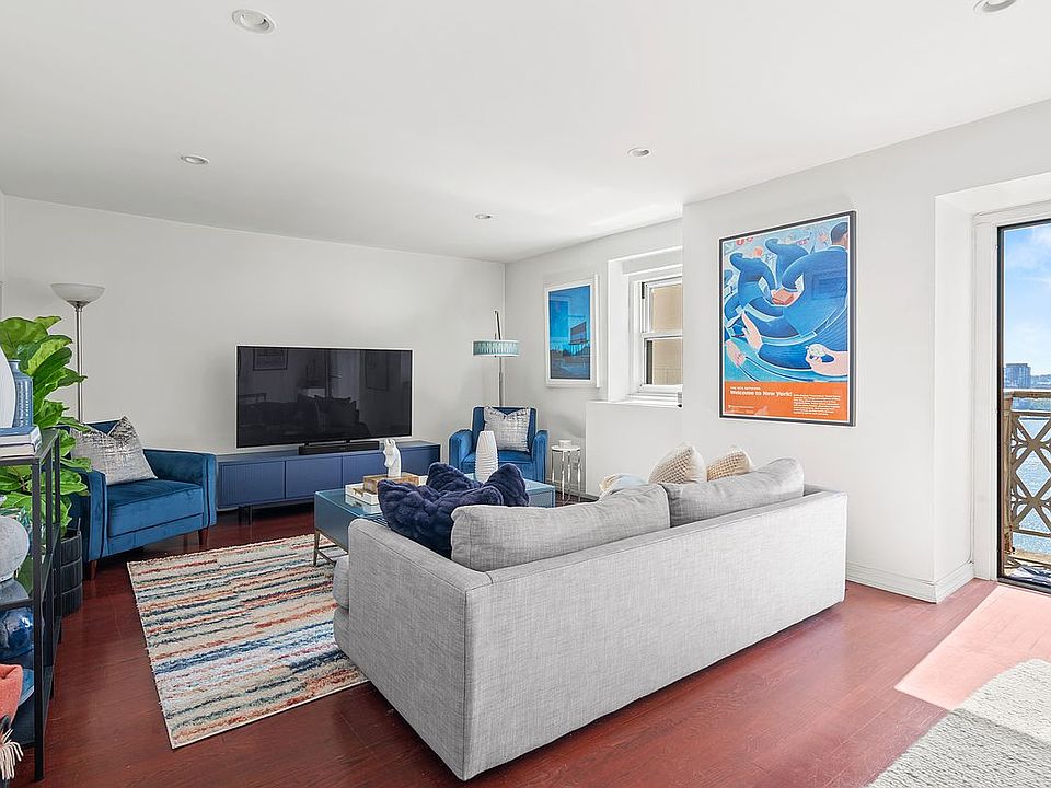 Welcome to Residence 19J at 3 Hanover Square — a sun-filled and elegantly renovated one-bedroom where classic charm meets modern convenience. Bathed in natural light, this home boasts bright southeast exposures with river views framed by a Juliette balcony, inviting in fresh breezes and a serene sense of escape.