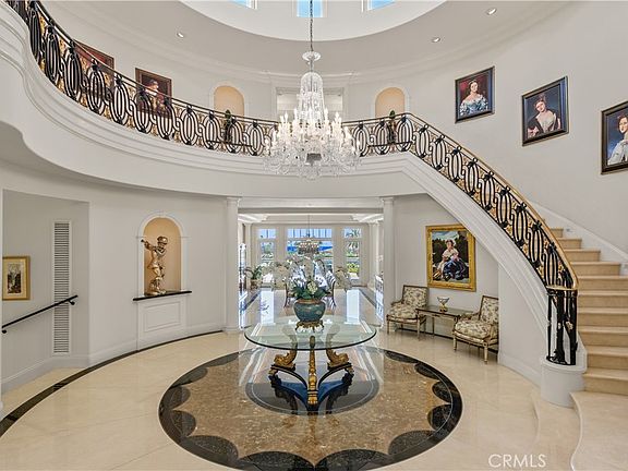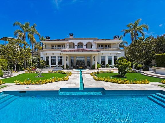 Majestically situated within the highly coveted guard-gated enclave of Pelican Hill, 3 Harbor Light presents an extraordinary opportunity to own a timeless estate with sweeping views of the Pacific Ocean, Catalina Island, and Newport Harbor. Set on an expansive 9,824 square foot lot, this palatial 6-bedroom, 7.5-bath residence is defined by grand scale, meticulous craftsmanship, and coastal elegance. A soaring double-height foyer introduces the home with dramatic presence, flanked by a sweeping staircase and bathed in natural light. The formal living and dining rooms exude classic sophistication, while the gourmet chef's kitchen boasts professional-grade appliances, custom cabinetry, and an oversized island ideal for entertaining. An adjacent family room opens seamlessly to the resort-style backyard, where panoramic views meet refined outdoor living. A covered lounge with fireplace, built-in BBQ/bar, and manicured landscaping frame the oversized pool and spa designed for both grand entertaining and quiet relaxation. The upper level hosts a sumptuous primary suite with dual bathrooms and closets, offering an ultra-luxury retreat that rivals any five-star resort. Additional en-suite bedrooms provide serene accommodations, each offering privacy and elegance. The lower level is a rare find featuring a state-of-the-art gym, and a 10-car subterranean garage ideal for the most discerning auto collector. With close proximity to world-class golf at Pelican Hill, upscale shopping and dining at Fashion Island, and award-winning schools, 3 Harbor Light is a trophy property that captures the essence of Newport Coast luxury living.