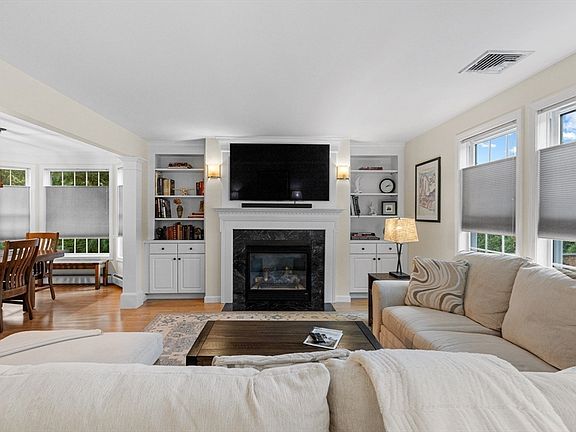 Welcome to your new home at Harbor Mist Complex! This stunning, spacious, move-in ready townhouse offers a first floor with garage entry, laundry room, outdoor patio access, and bonus room ideal for den, office, or guest space, with full bath. The second floor features an open floor plan with a cozy fireplace surrounded by custom built-ins, a dining area, and an updated kitchen with granite countertops and stainless steel appliances. Deck access from the living area perfect for outdoor relaxation. Upstairs, the primary suite boasts a walk-in closet and full bath, while two additional bedrooms and another full bath provide plenty of room for family or guests.Recent updates include a brand new AC handler and condenser, a 1.5 year-old hot water tank, and an electric car charger in the garage. Steps away from Fairhaven's bike path, shops and dining, and just minutes from the town beach.