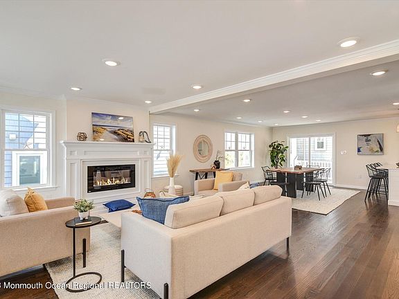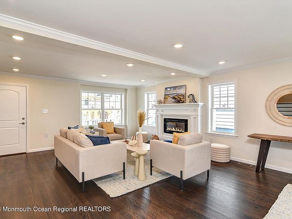 Meticulously staged to perfection, every detail of this home has been thoughtfully curated to offer you a seamless transition into your forever home. Coastal luxury living steps from the beach with ocean views from this magnificent NEW CONSTRUCTION 4 bedroom, 3 bathroom home only one lot away from one of the Jersey Shore's finest beaches. Offering breathtaking, protected and unobstructed ocean views and an array of high-end features, including James Hardie siding and Dolomite tile in all bathrooms, this home is a true gem that embodies both style and comfort. Upon entering, you'll be greeted by the gleaming hardwood floors that flow throughout the main living areas, creating a warm and inviting ambiance. The open-concept layout seamlessly connects the living room, dining area, and... kitchen, making it ideal for entertaining and family gatherings. Prepare to be inspired in the gourmet kitchen, equipped with sleek quartz countertops, a breakfast bar, and Viking appliances. The spacious bedrooms are designed to provide a peaceful retreat, with ample closet space, and abundant natural light. The master suite features a walk in closet and a luxurious en-suite bathroom complete with dual sinks, and a tile shower. On the third floor, there is a bonus room that can be used as an additional bedroom or another functional living space, along with a large deck with views of the ocean. Meticulous attention to detail in every aspect of the design and with its unbeatable location just steps from the beach, luxurious upgrades, and captivating ocean views, this coastal retreat offers a lifestyle of pure bliss. Don't miss the opportunity to make it yours and experience the ultimate in beachside living.