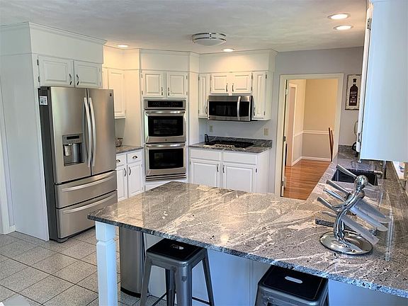 METICULOUSLY MAINTAINED 4 BED/2.5 BATH conveniently located near Route 125 + just minutes from I-93! From the moment you pull in, you are greeted by Breathtaking Grounds! The Recently Updated Kitchen boasts Tiled Flooring, Stainless-Steel Appliances, Beautiful Granite Counter-tops, Recessed Lighting, and a Double Wall Oven! Step into the Family Room with a Wood Burning Fireplace and Skylights allowing rays of sun to glisten across the room! The Den, Living Room, Dining Room, and a Half Bath are also located on the first level. Ascend to the second level and you will find a full bathroom and 4 bedrooms, including the Master Bedroom with a Luxurious Master Bath that comes loaded with a Tiled Shower, Flooring, Double Vanity w/Makeup Area, and a Jetted Tub! Some of the recent improvements are: Exterior Paint, Tree Removal, New Roof, New Chimney Cap, Masonry Work, Recessed Lighting, Upgraded Counter-tops, and New Appliances.