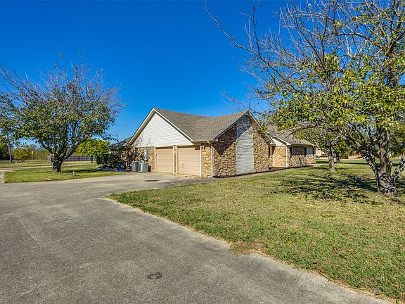 This charming home sits on approximately 1 acre and has a beautiful kitchen that was fully remodeled in 2021. It features a lovely gunite pool and a spacious 28 X 18 covered patio, perfect for outdoor gatherings. A 16 x 32 storage building and small accessory shed adds to this property's appeal. Inside, you'll find stunning LVP, dolomite kitchen countertops, gorgeous custom cabinetry. The master bathroom offers a convenient his-and-hers area, and there's a 240 sq. ft. exercise room complete with a sauna and easy access to the outdoors. The family room boasts a stunning Texas-sized stone fireplace, while the formal living and dining areas provide additional space for entertaining. The split bedroom layout includes two bedrooms that share a well-appointed bath one of which has ensuite access. With great utility space and plenty of cabinets. The home is wired for FIOS high speed internet and television. Located in popular Lucas in Wylie School district. This wonderful home has room to spread out and entertain family and friends!