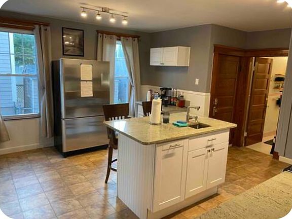 Larger 2BR in two family house. Living room/dining room, large kitchen with island and sink, kitchen pantry with large kitchen sink. 1 Bath. In unit laundry, personal driveway with back porch and back yard. Lots of storage.