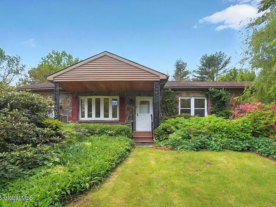 *Offer deadline Monday, 5/26 at 6 pm.* This charming ranch exudes a natural, peaceful vibe with mature gardens, a small koi pond, and a cozy shed nestled into the landscape. Inside, the living room impresses with vaulted ceilings, freshly refinished wide-plank pine floors, a gas stove, and built-in shelving. The kitchen features maple cabinets and a window over the sink that looks out to the tranquil backyard. Freshly finished oak hardwood floors and new paint enhance the bedrooms and family room. The home's exterior is equally inviting, with newer vinyl siding, a new roof, and beautiful natural stone accents on the front façade. A truly warm and welcoming retreat. All of this sits in a quiet neighborhood located in the Burnt Hills School District.