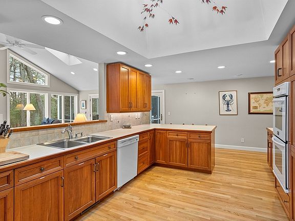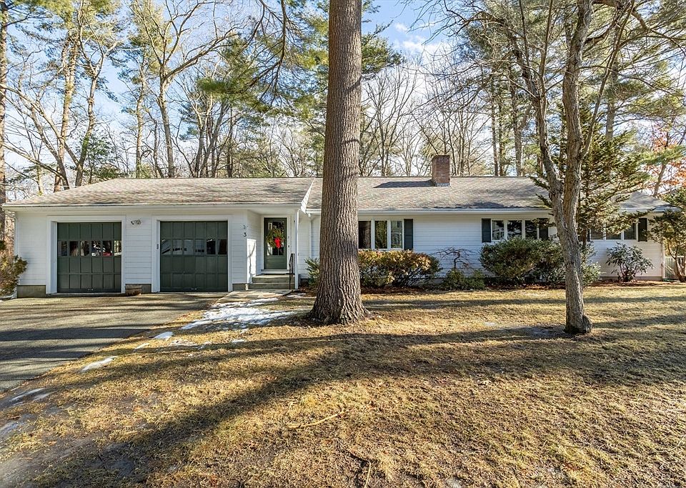 Welcome to 3 Hilltop Drive, a charming 4-bedroom, 2.5-bath ranch boasting over 2,500 square feet of living space. Nestled in a sought-after neighborhood w/ convenient access to Rt 3, this property offers more than meets the eye. Step inside to discover a spacious layout featuring a large family room addition off the kitchen, seamlessly flowing into the dining room. The home is bathed in natural light, thanks to skylights and easy access to the deck and screened porch, where you can enjoy the serene, private scenery. The kitchen is a chef's dream, complete w/ beautiful cherry cabinetry, a large skylight, ample pantry space, and fresh hardwood floors. Cozy up by one of the two fireplaces, perfect for those chilly evenings. The main floor hosts four bedrooms, including a luxurious primary suite with a private ensuite bathroom and a walk-in closet. The lower level offers endless possibilities with a large finished area, a laundry room, extensive storage space, and playroom. Welcome home!