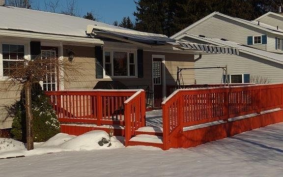Meticulously maintained two bedroom, two full bath ranch in one of the areas most desirable neighborhoods. Large, bright, open living room and dining room lead to eat-in kitchen with solid wood cabinetry and newer appliances. Modern full bath with tile flooring. First floor rounded out with two ample sized bedrooms. Awesome finished basement space with built-in bookshelves ,gas fireplace, and full bath. Basement also features large utility area - great for storage. One car attached garage with access from kitchen. Beautifully landscaped private backyard with huge deck and sun-setter retractable awning for increased outdoor enjoyment. Great house, great neighborhood. Must see!