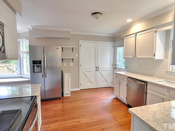 Sweet, ideal location on a wooded lot in Woodcroft. Available early December. White kitchen with barn doors hiding the washer/dryer (included). Quartz counters and stainless steal appliances. Close to all things Durham and ready to roll!