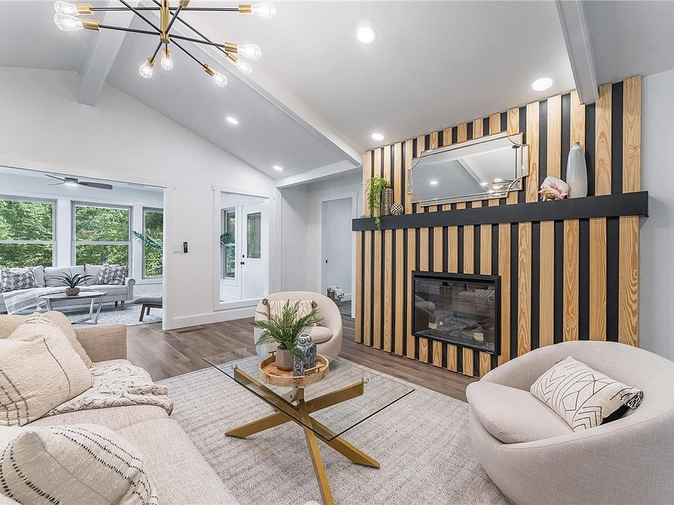 This stunner sits on a 0.33-acre lot and is 2 blocks from Tunnel Vision Trail. Step inside to find a redesigned fireplace with electric logs for year-round enjoyment, all new luxury vinyl plank flooring, new carpet, modern cabinets, lighting, fixtures, and paint throughout. A spacious living room with exposed wood beams flows seamlessly into a bright sunroom, which opens onto a large deck, perfect for entertaining. All bedrooms feature direct access to the deck for morning coffee or evening relaxation. The kitchen shines with new appliances, a pantry, and stylish gold accents paired with sleek black hardware, adding a designer touch to every room. Upgrades you’ll love: New HVAC system, sliding glass doors, Temperature-sensitive kitchen faucet, spa-like primary bath with rain shower, 6 body jets, LED lights, and a light-up makeup mirror. Backyard with a mix of shaded and open space for pets, play, or gatherings. This home is move-in ready with all the extras you didn't realize you needed.