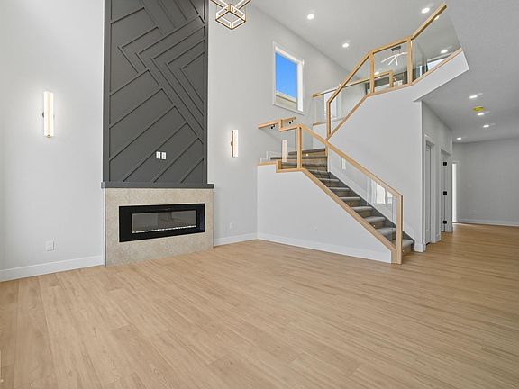 Designer finishes and fully upgraded SunnyView Home-2389sqft. The main floor features an office, 2-pc powder room with an elegant tiled feature wall. The living room boasts an open to below design, a central electric fireplace and a custom feature wall extending to the ceiling. The chef's kitchen features 2-toned ceiling height cabinetry that extend into the nook, under cabinet lighting, a central island with waterfall quartz countertop, built in garbage organizer and SS appliances. A modern staircase with step lighting and glass railing connects the floors in style, leading to a spacious bonus room. The primary suite includes a spa-inspired 5-pc ensuite with a custom shower, jacuzzi and a WIC. Two additional generously-sized bedrooms share a 4-pc bath. O/S dbl attached garage and large driveway. SEPARATE SIDE entrance to the bsmt. Customized high quality finishes w/ premium lighting, 3 gas lines, upgraded flooring, coffered ceilings, rough-in for central vacuum, garage has drain and hot/cold water lines.