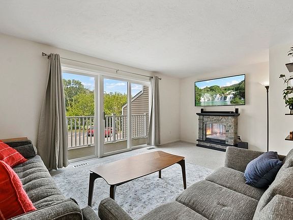 Welcome to Hovey Pond Estates! This townhouse condo unit offers three levels of sun filled living! Inside you will find a living room featuring plush carpets & glass sliders leading to a balcony – the perfect place to unwind after a long day. The open dining area seamlessly connects to a stunning kitchen equipped with quartz countertops, stainless steel appliances, white cabinets, & a charming undermount sink. On the second floor, you will find two spacious bedrooms with ample closet space for all your storage needs. The third-floor loft, adorned with skylights, is drenched with natural light and adds a touch of charm and versatility. With an attached garage and central air, comfort and convenience are at your fingertips. Your new home has everything you are looking for without the worry of exterior maintenance! Enjoy the serene surroundings and make this place your home!