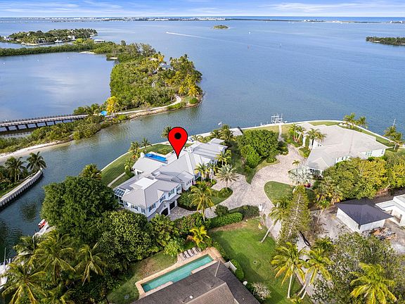 2020 Built waterfront masterpiece with brand new attached, but separate, guest quarters.Almost 7,000 sq ft of air-conditioned luxury situated at the end of a cul-de-sac on a point lot offering 340 ft of waterfront. Spectacular lagoon views and protected dockage. New sea wall installed when home was built. 2 existing lifts will accommodate boats under 40' feet in length. Oversized 3 car garage. Incredible outdoor pool area & hot tub overlooking the blue/green Indian River Lagoon. No bridges blocking your access to the river or Atlantic Ocean.