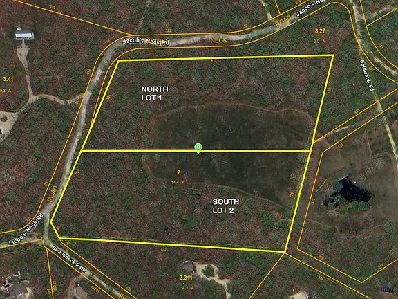Build your dream home or homes on the special 7.1 acre private wooded property surrounding a beautiful 4.5 acre meadow in the grand Boldwater Association (BWA) on the glorious Edgartown Great Pond with approx. 3,000 ft of private barrier beach. BWA is 40 homesites on 450 acres with 150 acres of conservation abutting another 1,500 acres of conservation and a few large estates - all convenient to town and airport. BWA amenities also include 2 tennis/pickleball courts and a boat launch which are both nearby. EDGARTOWN PLANNING BOARD APPROVED ON 10/22/25 A SUBDIVISION OF THE 14+ ACRES INTO TWO 7+ ACRE LOTS - North Lot 1 and South Lot 2. The lots can be purchased together for $4,950,000 or separately for $2,490,000. Both lots enjoy full BWA membership rights and privileges. The 2 lots will split ownership of the 4.5 acre meadow if sold separately. (see approved subdivision plan in DOCUMENTS)