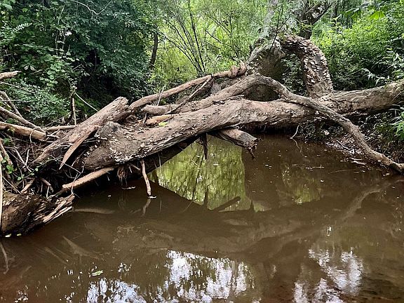 Creek-side campfiresPrivate retreatRolling hillsMature timberWell-established trees
