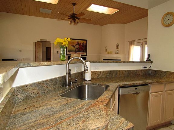 Thoughtfully Remodeled Kitchen and Baths. New Appliances, Newish Carpet, New Light Fixtures, almost all New Windows and New Stucco! Wood Deck living room Ceilings, Tile Floors and Kiva. Bright and light in this Open floor plan with Skylights. Custom Interior Wood Doors. Portal to the South on this 1.7 Acre Lot with Stunning Sandia Ortiz Views. Well maintained Home.