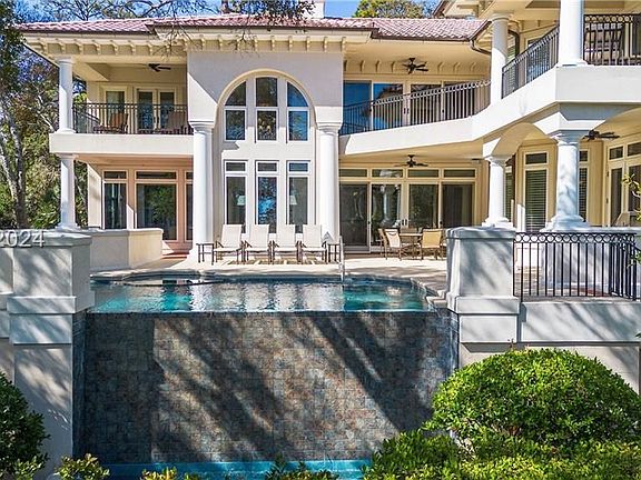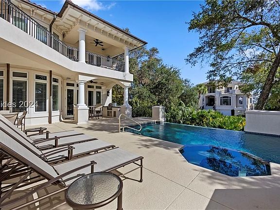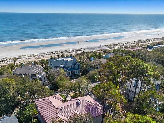 Don’t miss out on this spectacular buy! Stunning 2nd-row corner home facing the ocean on Ketch in Palmetto Dunes with easy access to beach walkway. Fabulous raised infinity pool & large pool deck with built-in grilling area. LVL ONE: den, formal dining, butler’s pantry, eat-in kitchen, dining area, living rm, laundry rm, powder rm, 3 BR | 3 BA (1 used as office). LVL TWO: 2nd laundry rm, 3 BR | 3 BA-including luxurious master ensuite with fireplace, fitness room (can be 7th BR) & private wraparound balcony with partial ocean view. Freshly painted interior, 2 new HVAC systems, huge garage & 3-stop elevator. Short bike ride to resort amenities!