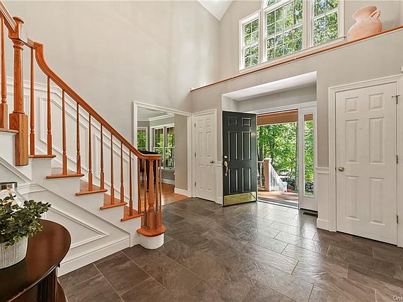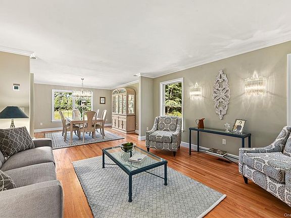 First Time Offered! Located in the picturesque northeast section of Westchester County, this 4BR/2.5BA center hall colonial with rocking chair front porch is set amidst Michelle Estates' gently-rolling, wooded acres. Modern touches await as the two-story entry hall beckons your presence with custom molding and a gorgeous polished nickel chandelier. A pristine white eat-in kitchen is the heart of this home with shaker cabinetry and quartz countertops, large center island, gas cooktop and glass sliders to deck outside. A sprawling, flat and private backyard (wonderful pool potential) yields ample room for unlimited outdoor fun, while formal living room adjacent to dining room allows complete flexibility for all indoor entertaining scenarios. Family room has wood-burning fireplace and is a casual, cozy gathering spot. First floor also boasts a spacious home office accommodating all work-from-home and Zoom class schedules. On the second floor, the master bedroom suite with vaulted ceiling includes an all new sumptuous spa-like bathroom filled with abundant natural light. Basement offers playroom (CO in process) and additional space to expand. Award-winning Katonah-Lewisboro schools, affordable taxes and quick, easy access to NYC, Katonah village, recreation, shopping and cultural activities make this an easy choice!