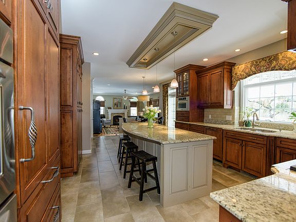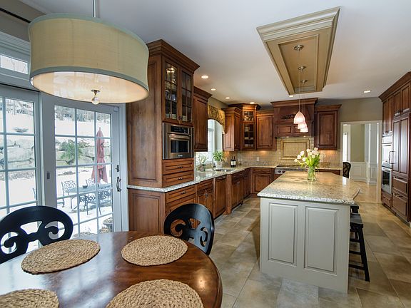 This well-maintained and meticulously renovated home in North Meadow Estates on the desirable north side of Shrewsbury features four spacious bedrooms plus an upstairs bonus room, 3 full second floor bathrooms and one half bathroom on the first floor. The stunning chef's kitchen includes custom-made cabinets, granite counter tops, ceramic flooring, a four-seat breakfast bar with custom tray pendant lighting, and Wolf, Sub-Zero and Kitchen-Aid appliances. The adjoining family room was updated to include crown molding, hardwood flooring, Palladian windows, and a custom-built mantle with tumbled-stone surround gas fireplace. The finished basement adds 900 square feet of additional space and includes an extra den, office, billiard room, and a 750 bottle capacity wine cellar and adjacent tasting room. The master bedroom suite offers a spacious walk in closet, dressing room, and a fully renovated master bath with custom cabinetry, ceramic tile, granite counter tops with double sinks
