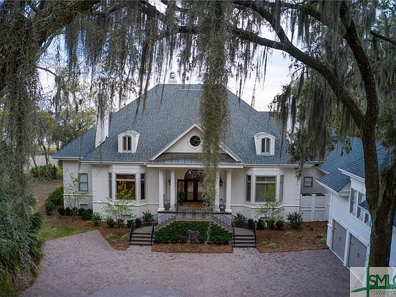 Enjoy panoramic eastern marsh views at this stately, extremely private estate home at The Landings on Skidaway Island in the highly desirable Midpoint neighborhood. Conveniently located near the main gate, this grand residence is positioned on a lush, oversized homesite on a quiet cul-de-sac, offering the tranquility of cool breezes, stunning natural beauty & spectacular sunrises. Incredible outdoor living spaces with pool, pool house and mature landscaping are ideal for entertaining or relaxing. Beautifully renovated by the current owners, this magnificent home features an elevator, great room with breathtaking water views & chef’s kitchen with new high-end appliances, custom cabinetry & quartz countertops. This home offers dramatic water views plus a spacious primary suite on the main level, luxury upgrades throughout as well as a new roof, new HVAC units & more. Additional highlights include a handsome stucco exterior, fireplaces, designer lighting, bonus room & 3-car garage.