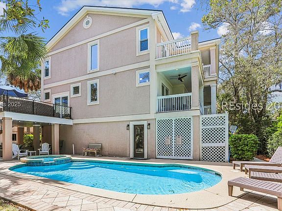 Welcome to your coastal retreat just steps from the Atlantic Ocean! Nestled in the sought-after South Forest Beach area, this stunning 6BD, 5.5BA home offers nearly 4,000 square feet of beautifully appointed living space and just 4 rows from the beautiful sandy beaches of Hilton Head. With a Charleston-style front porch and a bright two-story foyer, the home exudes Southern charm and modern comfort. Prime location with easy access to the beach, Coligny Plaza, Celebration Park and a short bike ride to the Sea Pines Beach Club (via beach access). This updated home includes front and back porch space, a private pool and spa and plenty of extra room in the underground garage area equipped with a ping pong table and a tiki bar! Sleeps up to 16 guests comfortably which makes this a rental machine. Fully furnished and move-in or rental ready. Whether you're looking for a family getaway, a high-performing rental property, or a serene beachside haven, 3 Laurel Lane delivers the ultimate Hilton Head lifestyle!