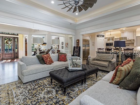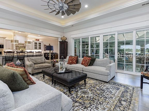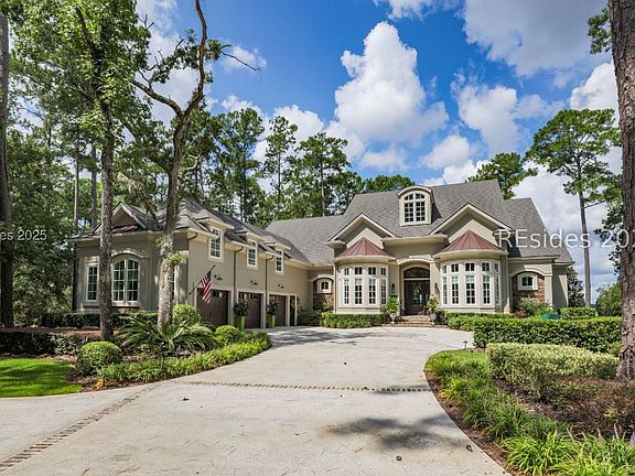 Experience the best of Lowcountry living in this exceptional estate home, perfectly positioned on nearly an acre and a half of prime deepwater property within the prestigious, gated community of Berkeley Hall in Bluffton, South Carolina. Built in 2019, this custom 5,425 sq. ft. residence combines timeless elegance with modern craftsmanship and every luxury feature you could imagine.Step inside to discover a thoughtfully designed floor plan with 4 spacious bedrooms, 4 full baths, and 2 half baths, offering both comfort and privacy for family and guests. Soaring ceilings, walls of windows, and refined architectural details highlight the homes open and airy living spaces. A gourmet chefs kitchen, expansive great room, and elegant dining areas make entertaining effortless.Outdoors, your private paradise awaits. Situated on a premium deepwater homesite, the property includes a private dock with boat lift, making it ideal for boating enthusiasts and sunset cruisers. The screened lanai is equally captivating, featuring a resort-style pool and spa, gathering area and outdoor kitchen. Enjoy panoramic west-facing views, ensuring some of the most breathtaking sunsets in the Lowcountry. Every detail has been carefully considered in this home from its high-end finishes to ample storage and versatile spaces designed for todays lifestyle. Rarely does a property of this caliber, on such an oversized premium lot, become available within Berkeley Hall a private, gated golf and lifestyle community known for its two world-class Tom Fazio courses, fitness center, spa, walking trails, and vibrant club life.This is more than a home its a Lowcountry dream.