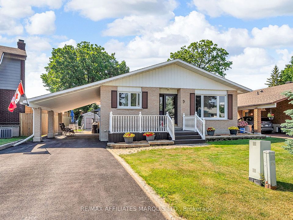 Welcome to this well-maintained all-brick bungalow with an attached carport, tucked away on a quiet cul-de-sac in Cornwall's East-End off Sandfield Crescent. This 3-bedroom, 2-bath home offers a spacious eat-in kitchen and a bright living room, all featuring updated, superior-quality laminate flooring. The primary bedroom includes a patio door that opens to a raised rear deck, perfect for enjoying your private backyard oasis. Two additional bedrooms and a full 4-piece bath complete the main floor. The finished basement offers a large recreation room with a cozy natural gas stove, a bonus room, a combined utility and laundry area, and a separate storage room. Outside, you'll find tasteful landscaping, a front veranda, a private fenced yard with a raised deck and lower patio, plus two storage sheds. Recent updates include the roof (2024), all windows, entrance and storm doors (with screens and glass inserts), and a heating and cooling system upgraded to forced-air natural gas in 2002. Please allow 24hrs irrevocable on all offers.
